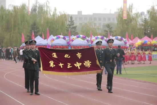 上午7:00时,孙侠校长宣布运动会开幕。各检阅队伍精神抖擞、步伐矫健、口号响亮,依次有序地阔步通过主席台接受检阅。嘹亮的号声,体现了十三中人的实力;清脆的鼓点,彰显了十三中人的力量。孙侠校长在开幕辞中,激励“重德崇优”的十三中人,做最好的你自己,做向上的十三中人!